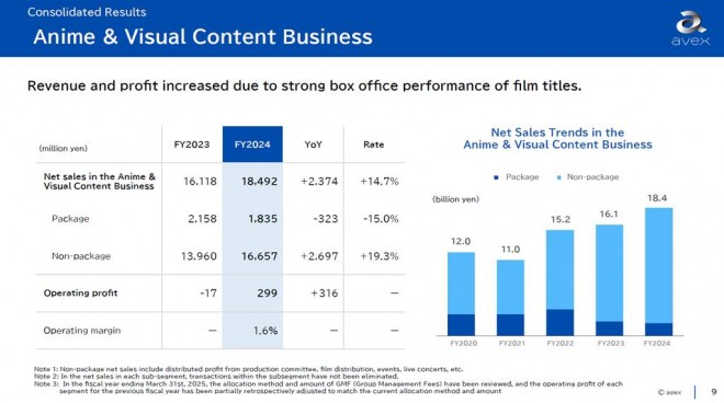 Avex Inc. reported that its anime and visual business achieved sales of ¥16.118 billion, a 14.7% year-on-year increase, and an operating profit of ¥299 million for the fiscal year ending March 2025. This marks a turnaround from a ¥17 million loss in the previous fiscal year. The performance of this segment contrasts with the overall company’s results—Avex as a whole posted a year-on-year decline in both revenue and profit for the full fiscal year.