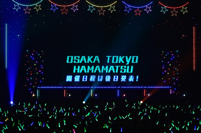 Afterward, Miku changed into her main visual costume and asked fans, “Were we able to become everyone’s brightest star?” The concert ended with the theme song “Lustras” (*Luna feat. Hatsune Miku). At OSAKA and TOKYO venues, constellations spelling “Hatsune Miku” and “Magical Mirai” appeared across the ceiling, accompanied by glowing blue-green lights.